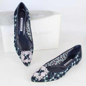 NEW MANOLO BLAHNIK Hangisi Lace Buckle Ballerina Flats