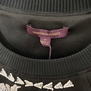 NEW MARCHESA Voyage Black and White Sequin Fit & Flare Dress Cocktail Whimsigoth