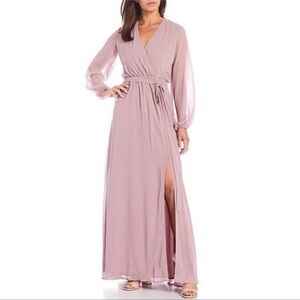 NEW MARINA SIZE 6 LONG SLEEVE CHIFFON GOWN MAUVE ROSE FORMAL ELEGANT SIDE SLIT