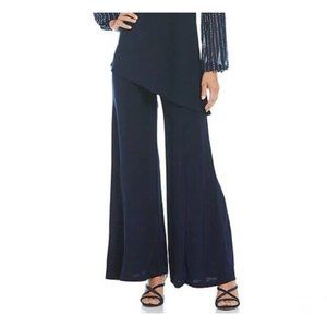 NEW MARINA Womens Wide Leg Jersey Pull on Pants Sz 8 Blue Elastic Waist Stretch