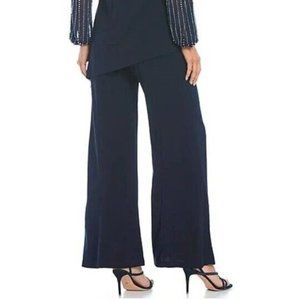 NEW MARINA Women's Wide Leg Jersey Pull on Pants Size 8 Blue Elastic Waist Stretch