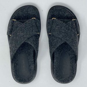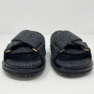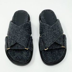 NEW MARNI Wool Fussbett Crisscross Slide Sandals in Dark Anthracite Grey Size 6