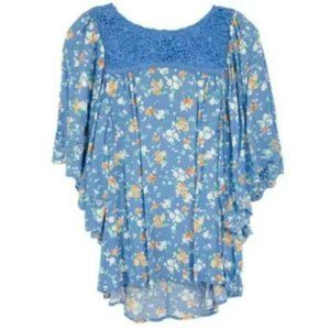 NEW MATILDA JANE Periwinkle Blue Lacey Inset Be Here Now Flutter Sleeve Fall Top