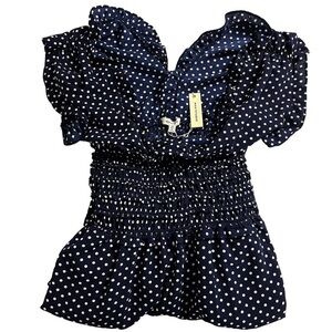 ✨NEW!✨ MAX STUDIO Women's Blue V-neck Polka Dot Shirred Waist Jumpsuit - XS