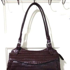NEW MAXX New York Chestnut Red 100% Croco Embossed Leather Shoulder Bag Purse