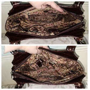 SUPER NICE Women's Maxx New York brand Chestnut Red/Brown 100% Croco Embossed Leather Handbag Shoulder Bag Purse, Double Slightly Adjustable Shoulder Straps, Multi Colored Paisley Pattern Silky Lining, Top Zipper Closure, Soft Rectangle Bottom with Studs, Magnet Over Large Outside Pocket, Other Outside Zip Pocket, Inside Pockets and Original Dust Cover/Bag.