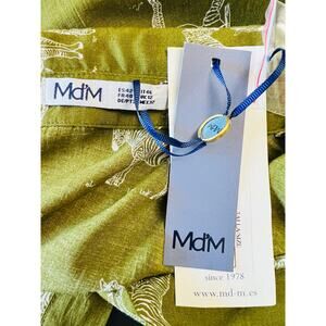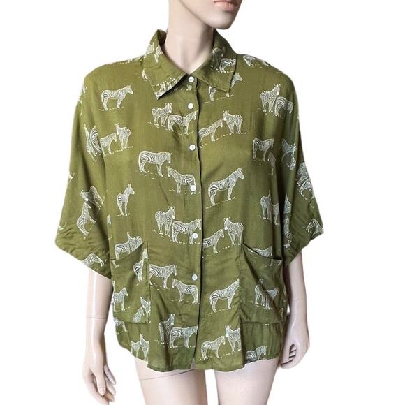 NEW MDM Top Animal Print Zebra Green Shirt Blouse Size Large Short Sleeves
