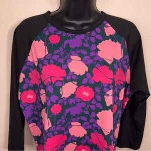 NEW MEDIUM LULAROE BLACK FLORAL TOP BASEBALL STYLE WOMENS TOP STRETCH