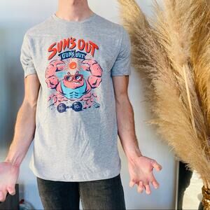 NEW MENS Grey Short Sleeve Tee Shirt Suns Out Guns Out Graphic Screen T-Shirt M
