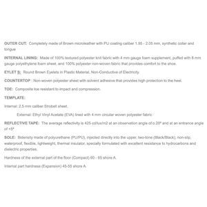 OUTER CUT: Completely made of Brown microleather with PU coating caliber 1.95 - 2.05 mm, synthetic collar and tongue