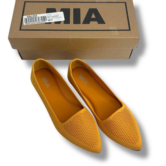 NEW MIA Corrine Mustard Knit Ballet Flats Size 7.5 Gold Yellow Slip On Pointed