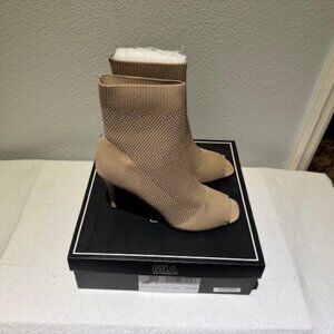 NEW MIA Sock Bootie Heels – Tan Knit Peep Toe, Size 8.5, Original Box