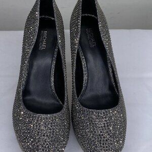 NEW MICHAEL KORS Chantal Glitter Chain-Mesh Platform Pumps Gray Women’s Size 7.5