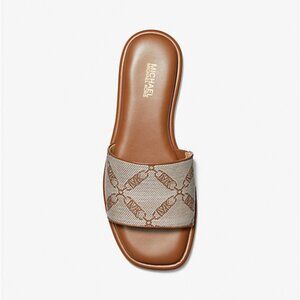 NEW MICHAEL KORS Hayworth Empire Logo Jacquard Slide Sandal Brown Size 9