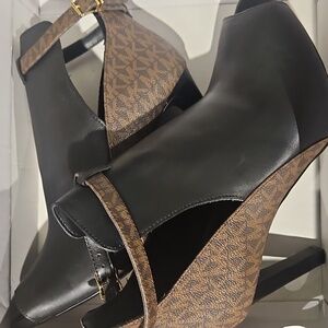 NEW! MICHAEL KORS Leather Lawson Open Toe Heeled Booties 11.