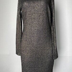NEW MICHAEL KORS Metallic Crinkle Jacquard Mini Dress – Black/Gold – Size M