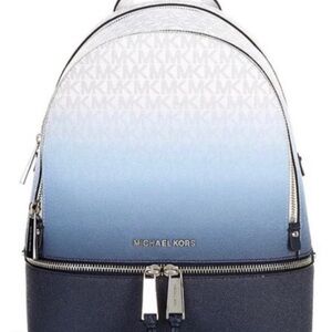 Stylish MICHAEL Michael Kors Medium backpack, Navy Blue Ombre gradient design. Features silver hardware and iconic logo pattern. Brand New with Tags.