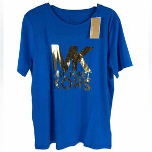 NEW MICHAEL MICHAEL KORS Made in Colombia 🇨🇴 Gold Tone MK Logo T-Shirt Sz M