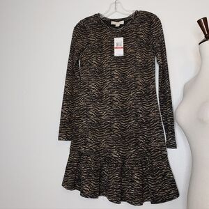 NEW MICHAEL Michael Kors Flounce Tiger Metallic Dress Animal Print Designer
