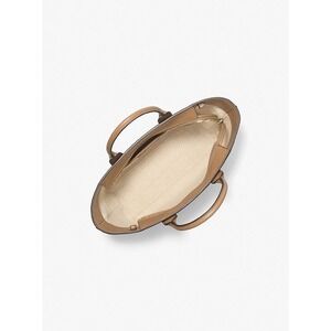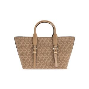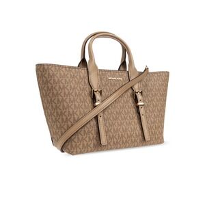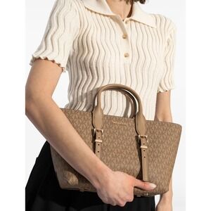 NEW MICHAEL Michael Kors Moore Medium Signature Logo Leather Satchel in Husk