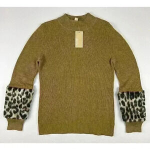 NEW! MICHAEL Michael Kors Women's L Faux Fur Cuff Sweater In Dark Camel NWT $150