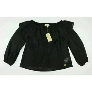 NEW! MICHAEL Michael Kors Women's L Ruffle Off-the-Shoulder Top In Black NWT $98