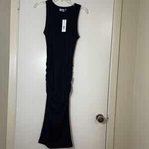 NEW! MICHAEL STARS Wren Ruched Midi Ultra Rib black bodycon dress small