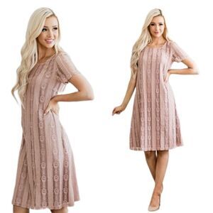 NEW MIKAROSE dress the Elise dusty rose lace short sleeve modest M