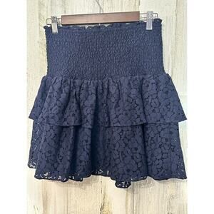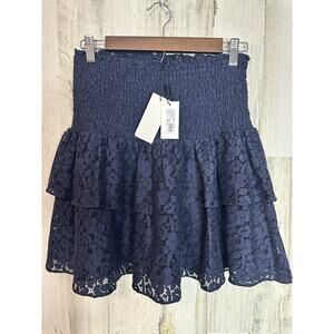 NEW MILLY Wyatt Cotton Lace Skirt Navy Tiered Floral Smocked Waist NWT $325. Condition is New with tags. Shipped with USPS Ground Advantage.