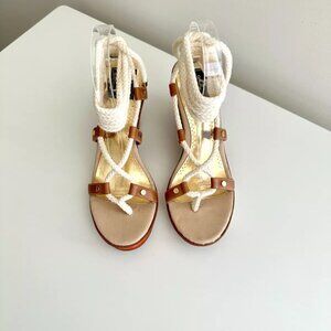 NEW MILLY X SPERRY TOP-SIDER Floral Rope Lace Up Wedge Sandals in Red Sze 8