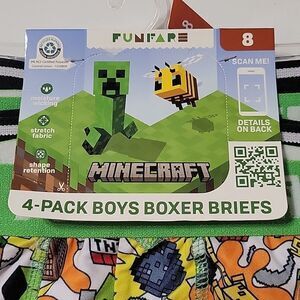 NEW MINECRAFT 4 PACK BOYS STRETCH BOXER BRIEFS UNDERWEAR SZ 8 NWT