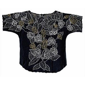 Black rayon with floral 3D embroidery! You can tell this is a super high quality piece!
