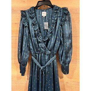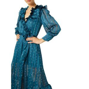 NEW MISA Gabriella Asymmetric Striped Wrap Midi-Dress SIZE XS