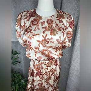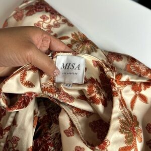 NEW MISA Los Angeles Paulina Puff Short Sleeve Midi Dress Beige & Brown Sz XS