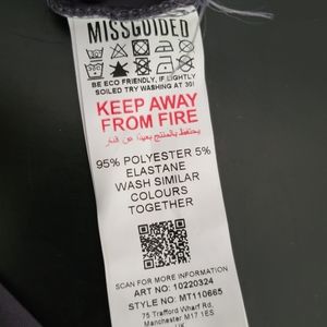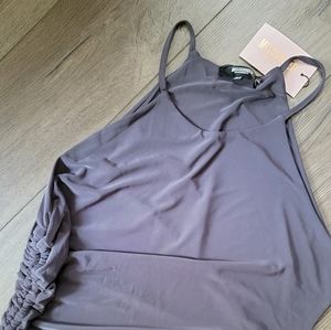Brand new with tags, Missguided slinky dress. Dark Grey color with ruched side detail and asemitrical bottom. It's a racer-neck top with a very flattering siluett. Double lined stretchy material and form fitting. You do not need to be pregnant to pull this off!