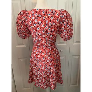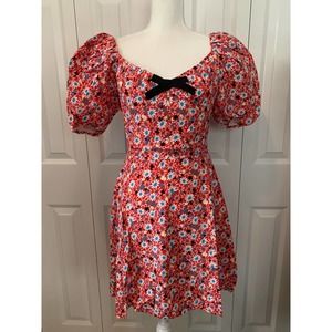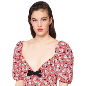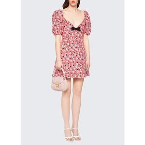 Miu Miu silk crepe dress in botanical print with a bow front.