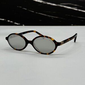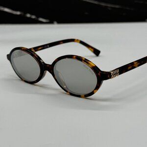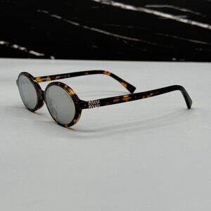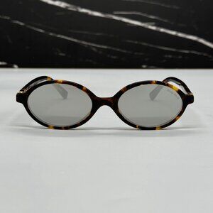 NEW MIU MIU MU04ZS OVAL HAVANA SILVER WOMEN SUNGLASSES MU04ZSF VAU07F