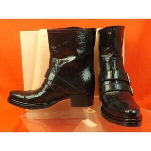 NEW MIU MIU PRADA BLACK CRACKED LEATHER MOTO BIKER 2X BELTED SHORT BOOTS 37 $895