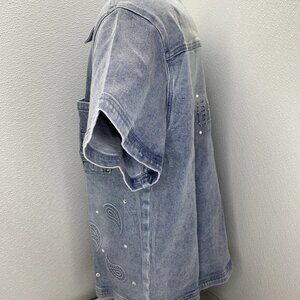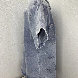 NEW MIXED EMOTION Paisley Denim Short-Sleeve Snap-Down Shirt – Blue – Size M