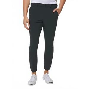 - Description: Introducing the Helmsman Jogger Pant by Mizzen + Main, a perfect blend of style and comfort in a sleek black solid color. These men's joggers feature a slim fit design with a tapered and elasticated leg opening measuring 12¾ inches, along with a 29-inch inseam for an ideal fit. Crafted from 88% polyester and 12% spandex, they provide lightweight, 4-way stretch fabric for maximum mobility. Closure: Back pocket zip closure. Care: Machine wash cold, low heat tumble dry.