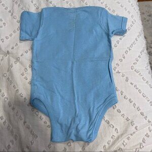 There is no size tag, but the bodysuit length is 16.5” and looks like a 3-6 month.