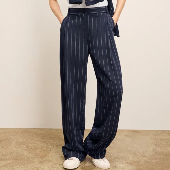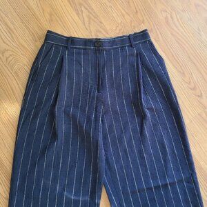 NEW! M.M. LaFLEUR FITZ PLEATED TROUSERS PANTS WOVEN PINSTRIPE HIGH RISE