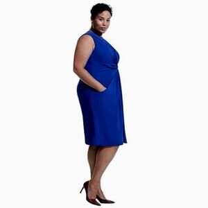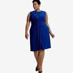 NEW M.M. LaFleur Taylor Knee Length Knotted Dress In Klein Blue NWT Plus Size +1