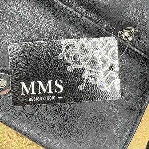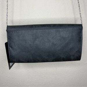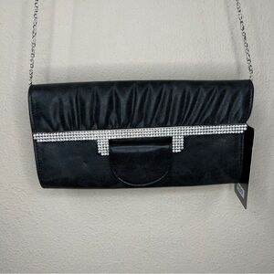 NEW MMS Black Faux Leather Rhinestone Accent Clutch Purse Silver Chain Strap