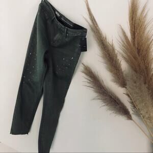 NEW MOSSIMO Olive Green Raw Hem Distressed High Rise Skinny Jean Jegging 27 4
