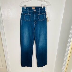 Description: The MOTHER Patch Pocket Rambler Jeans feature a high rise, wide, straight leg, and perfectly placed patch pockets. High rise. Wide, straight leg. Clean hem. Front and back patch pockets. Front zip.