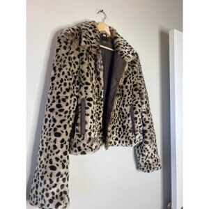 NEW MOTHER The Pony Keg Cheetah Print Button Front Faux-Fur Jacket Brown Sz: M