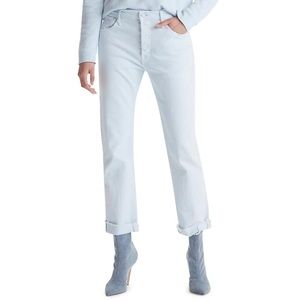 NEW MOTHER The Scrapper Cuff Ankle Fray Straight Leg Light Wash Jeans NWT