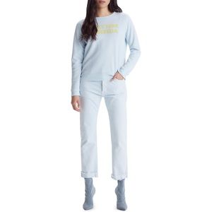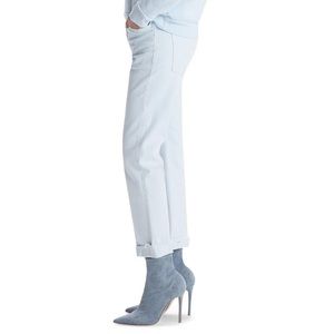 MOTHER The Scrapper Cuff Ankle Fray Jeans, NWT, Color-Baby Blue/The Devil May Care/light wash. Easy does it. Slouchy, straight, cuffed (or uncuffed with frayed hem)and buttoned up. Part of the Aura color capsule that’s made with love in LA. Five pocket style, button fly and button closure. 98% cotton 2% elastane.