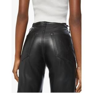 Faux real. High-waisted pants with a wide straight leg, zip fly and clean ankle-length inseam. Cut from a buttery soft faux leather fabric in black. Made in Los Angeles.